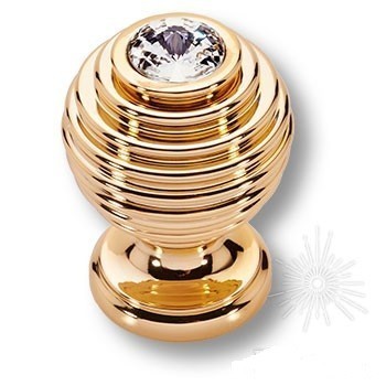 Ручка кнопка 200200PB020OZ, материал Латунь, отделка Золото Кристаллы Swarovski, d=20 мм